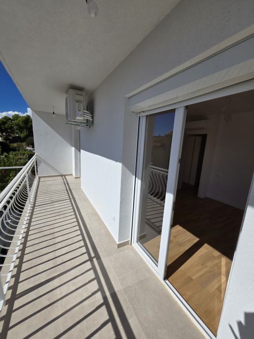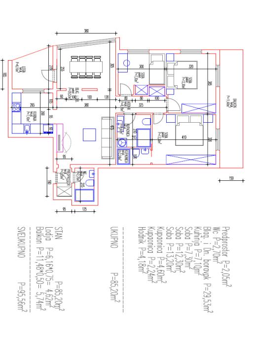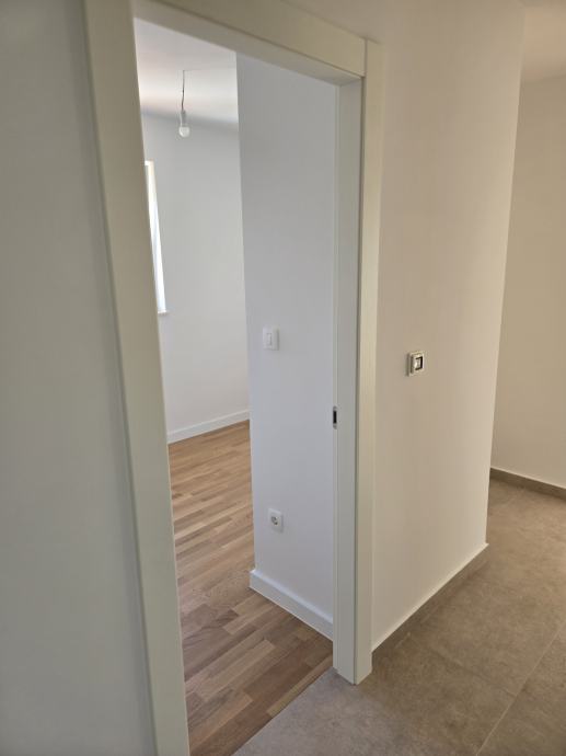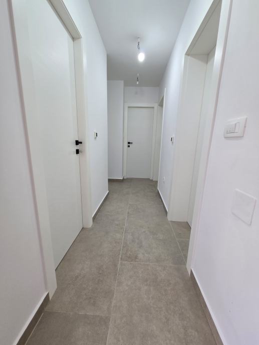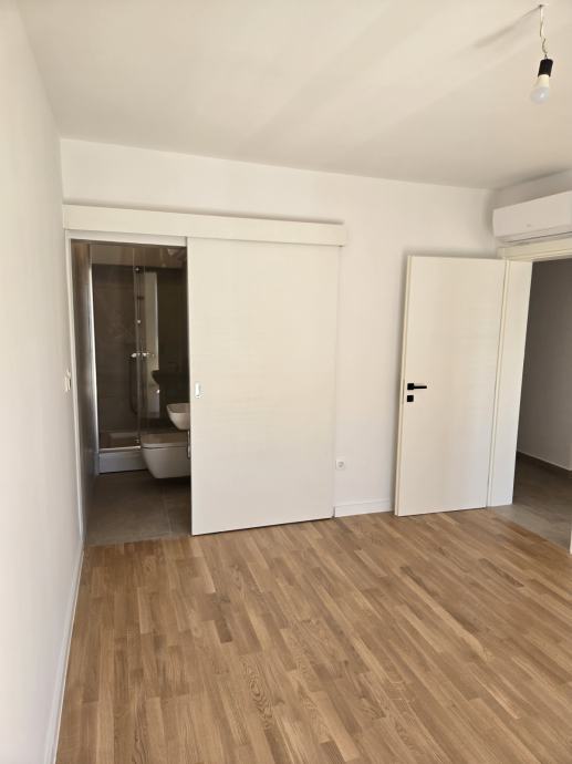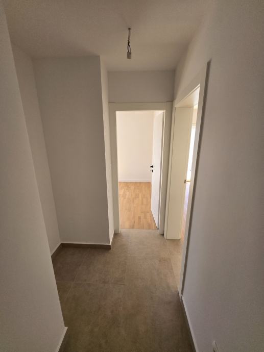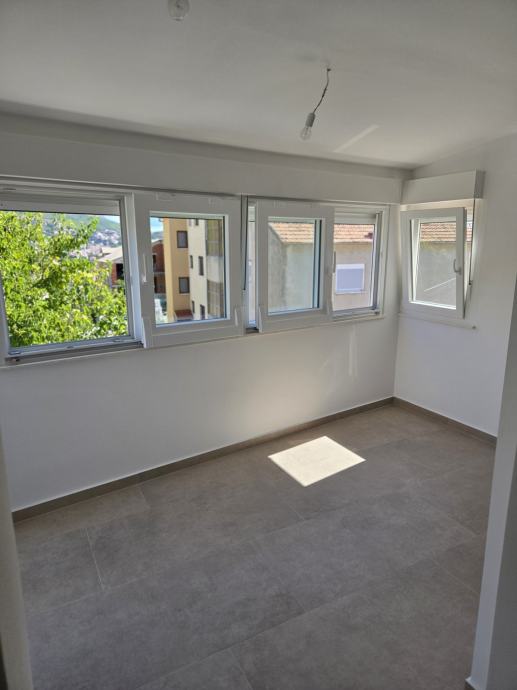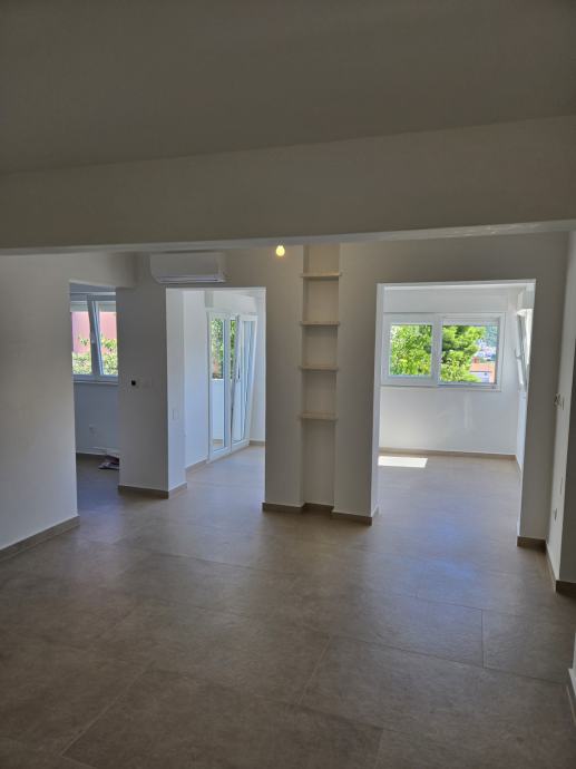 Prodaje se trosoban stan, kompletno renoviran, 95,56 m2. Stan se sastoji od hodnika, blagovaonice, kuhinje i dnevnog boravka čija je podna površina obložena keramičkim pločicama i podnim grijanjem, te tri sobe s parketom i tri kupaonice s podnim grijanjem.