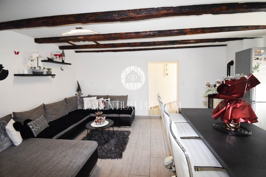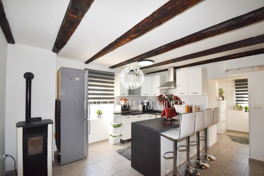 U srcu mirnoga istarskog mjesta smjestila se ova zanimljiva autohtona istarska kamena kuća ukupne površine od preko 350m2 sa opremljenim stanom na 1. katu.