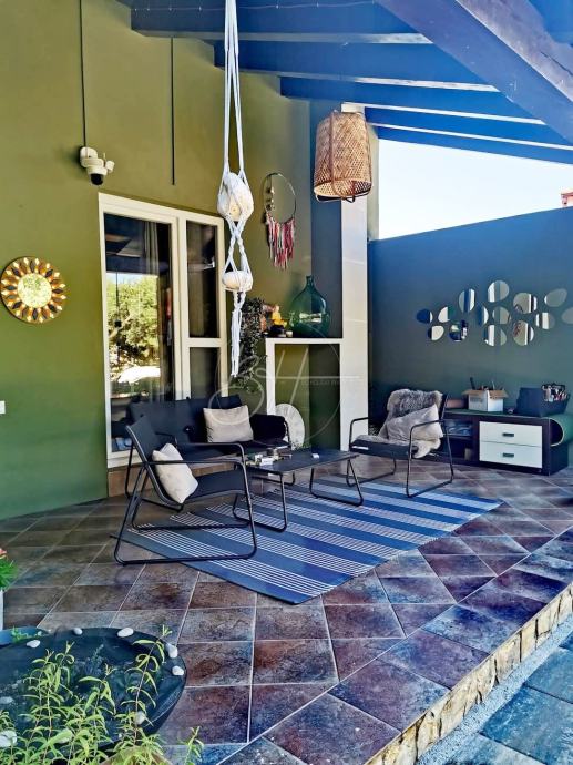 Na okućnici se nalazi djelomično natkrivena terasa od 15 m², prednji i stražnji vrt te privatni parking za do tri automobila. Kuća je klimatizirana, s mogućnošću postavljanja kamina, i orijentirana prema jugozapadu, što osigurava prirodno svjetlo tijekom cijelog dana.