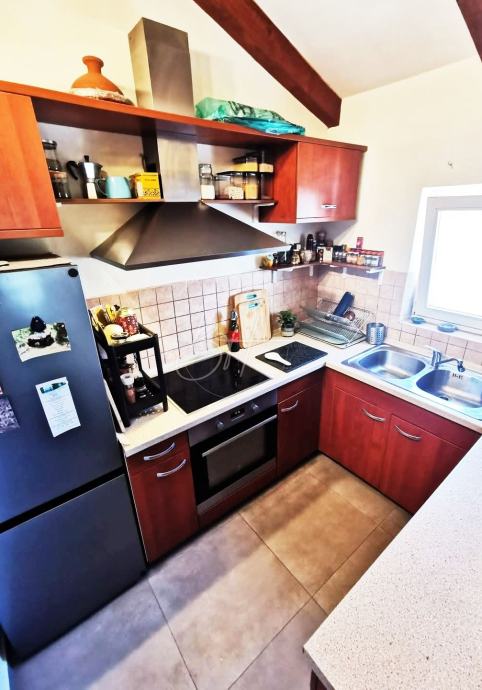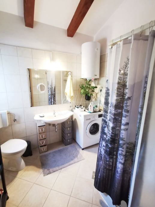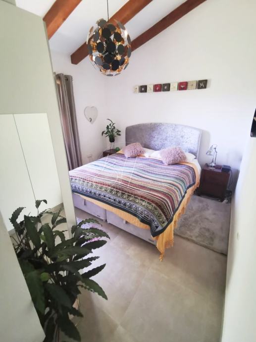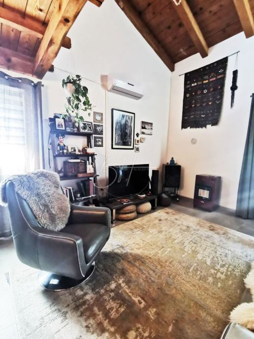 Kuća površine 110 m² nalazi se na parceli od cca 350 m², a renovirana je 2023. godine u stilu koji kombinira tradicionalne drvene grede s modernim komforom.