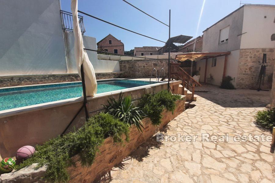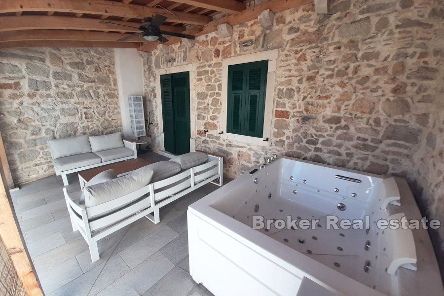 Renovirana autohtona kamena kuća, sa bazenom, u nizu, ukupne stambene površine od 170 m2, na parceli od 220 m2.