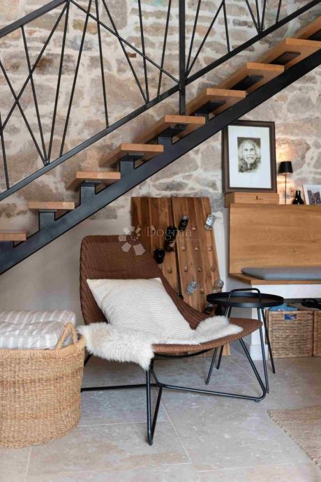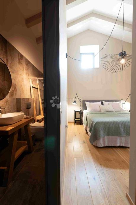 Ulaskom u kuću otkriva se udoban dnevni boravak s moderno uređenim minimalističkim namještajem, blagovaonicom i potpuno opremljenom kuhinjom idealnom za kulinarske eksperimente s vrhunskim istarskim sastojcima. Uz sjedeći dio nalazi se i peć na drva koja osigurava ugodnu atmosferu tijekom cijele godine.