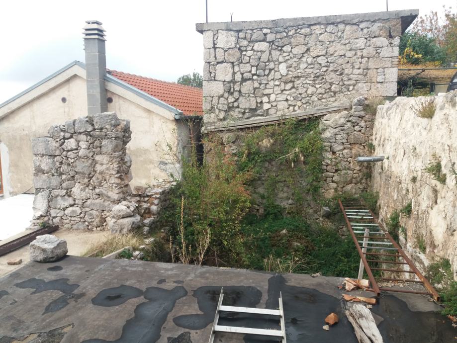 Na zasebnoj čestici unutar zatvorenog prostora nalazi se ruševina stare kamene kuće upisana u katastar, s očuvanom autentičnom voltanom konobom (otprilike upola manjom od konobe novije kuće). Na konobi je izvedena betonska deka radi stabilnosti objekta. Sačuvani su kameni zidovi, izvorno stepenište koje vodi na kat, kamene volte koje formiraju terasu ispred kuće te na katu vidljiv stari veliki dimnjak, što pruža izniman potencijal uređenja u tradicionalnom mediteranskom stilu.