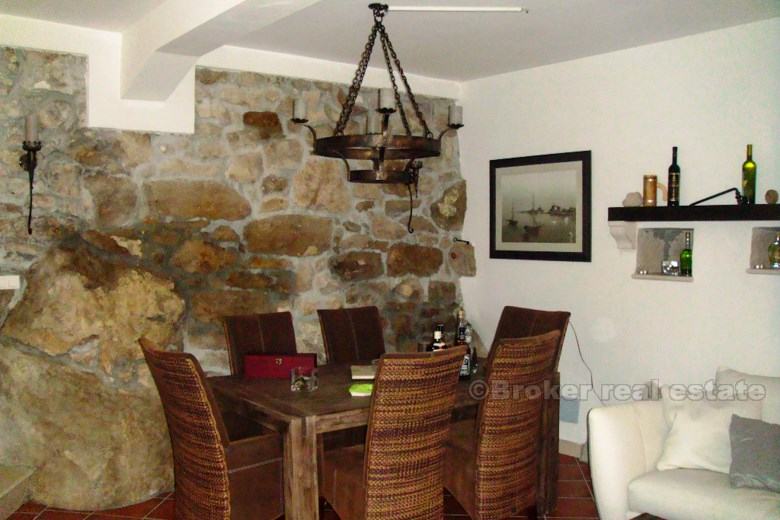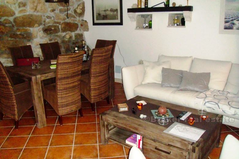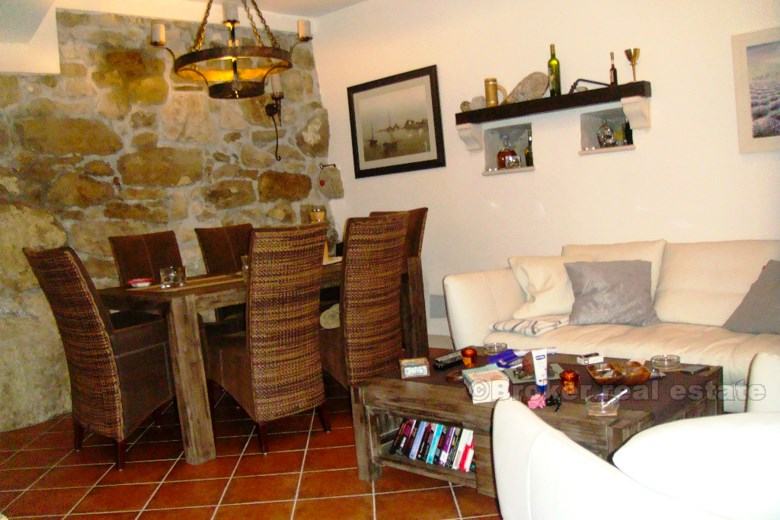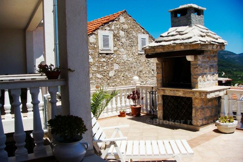 Villa Ana je izvorno stara kamena kuća građena prije više od 200 godina i potpuno renovirana 2010. godine Obnova je trajala više od 5 godina. Kameni zidovi su 60-80 cm su osigurali ne samo sigurnost, nego punu zaštitu od svih klimatskih utjecaja, i zime i ljetnih vrućina. “Villa Ana” je prvobitno izgrađena mukotrpnim radom koji je trajao cca. 10 godina. “Villa Ana” u potpunosti je prilagođena tehnološki zahtjevima, te ima telefon i internet veze i sve druge tehničke pogodnosti i opremu kao što su LCD TV u svim sobama, aparate za kavu, hladnjake i druge stvari kako bi se osiguralo moderni stil života za buduće vlasnike. Visoka kvaliteta prilagođeni dizajniran namještaj je u cijeloj kući. U sklopu kuće ćete naći prilagođene ručno rađene detalje od kamena. Zanimljivo je spomenuti da je Villa za svakodnevnu upotrebu ne koristi vodu iz javne vodoopskrbe već oborinske vode prikupljene na dva posebno dizajnirana velika podzemna spremnika isklesana u kamenu. Villa – prostor Opis: Okućnica je izgrađena u starom dalmatinskom stilu s kamenim klupama i stolom. Prostorije specifikacije: 1 Konoba 1 Spremište 4 Spavaće sobe (za 8 osoba ukupno) 5 Dnevne sobe 4 Kupaonice 4 Kuhinje + ljetna kuhinja 5 terase od kojih 2 natkrivene terase 1 otvoreni kamin (roštilj) Parking za 4 vozila Uz kuću se nalazi privatno zemljišta od 96 m² za parking. Villa se nalazi 3 km od mora i od najljepših plaža otoka Korčule, kao kao što su Žitna plaža i Pupnatska luka plaža.