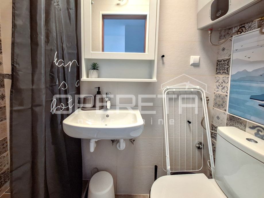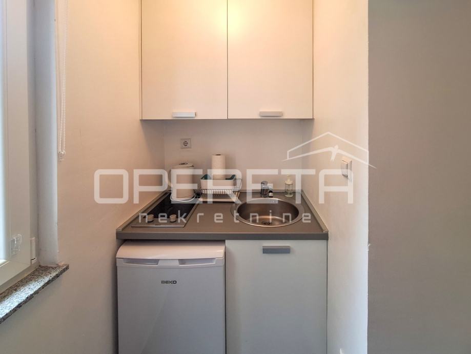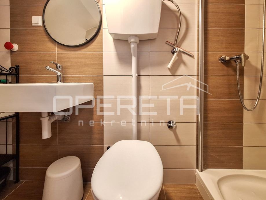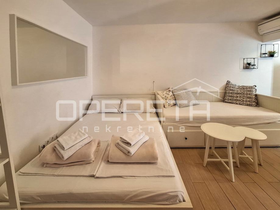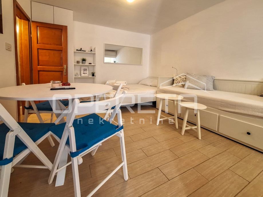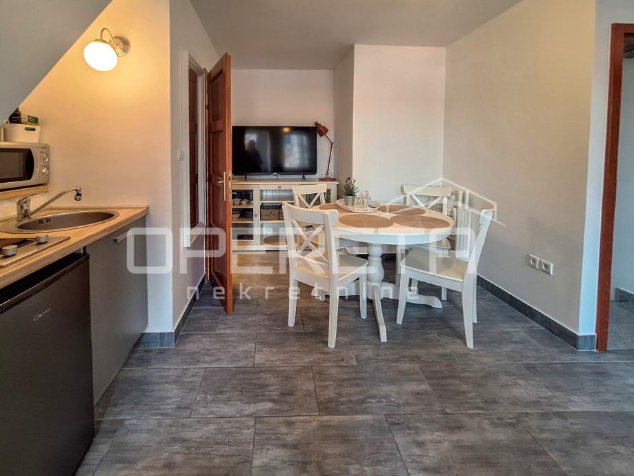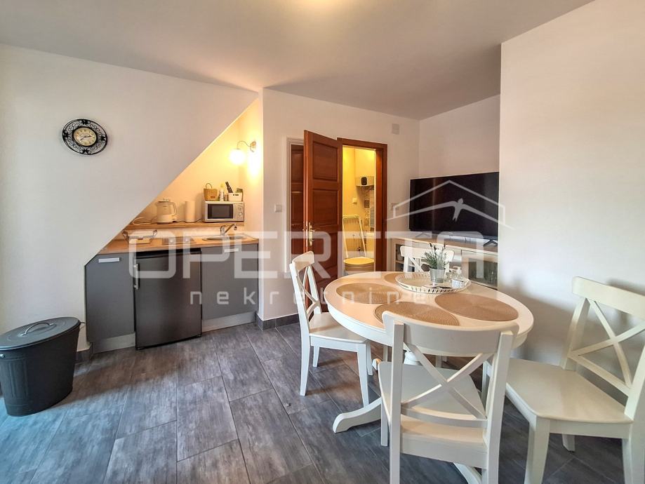 U prizemlju se nalazi apartman površine 20 m2, a sastoji se od kuhinje, kupaonice i dnevne sobe s ležajem.