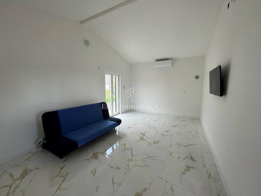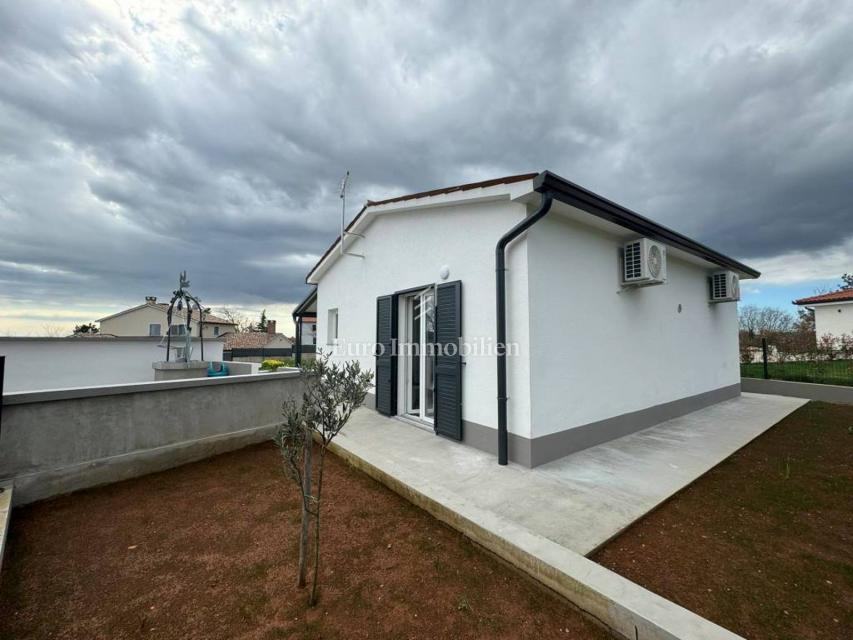 Kuća je kompletno renovirana 2024.godine. Ima površinu 44 m2, a sastoji se od spavaće sobe, dnevnog boravka s kuhinjom i blagovaonicom i kupaonice. Spavaća soba ima izlaz na lijepo uređenu terasu koja je povezana sa pomoćnim objektom odnosno spremištem površine 20 m2. Na terasi se nalazi autohtona istarska šterna za vodu. Grijanje i hlađenje putem klima uređaja. Prodaje se bez namještaja. Ima parking i veliku okućnicu površine 1.100 m2 , s puno potencijala za dodatne sadržaje.