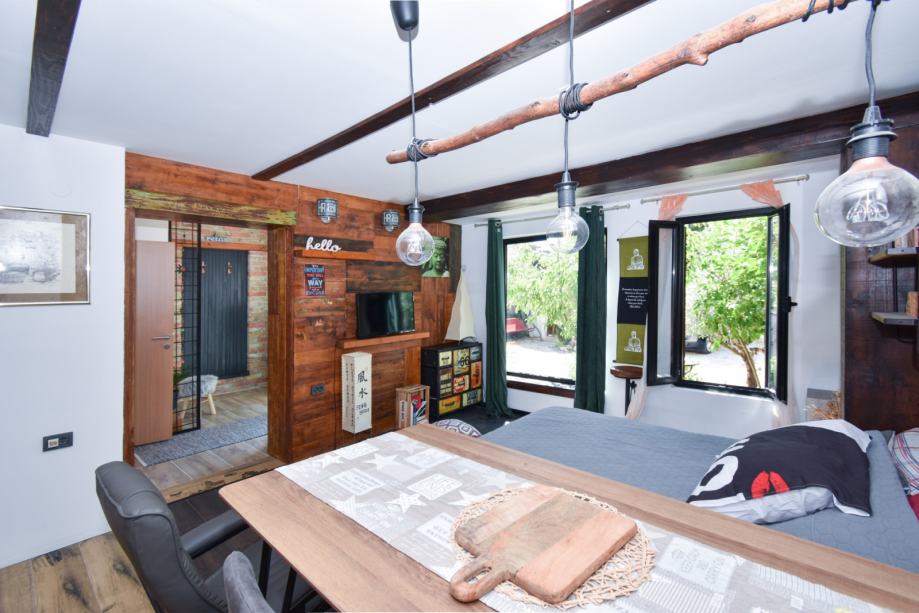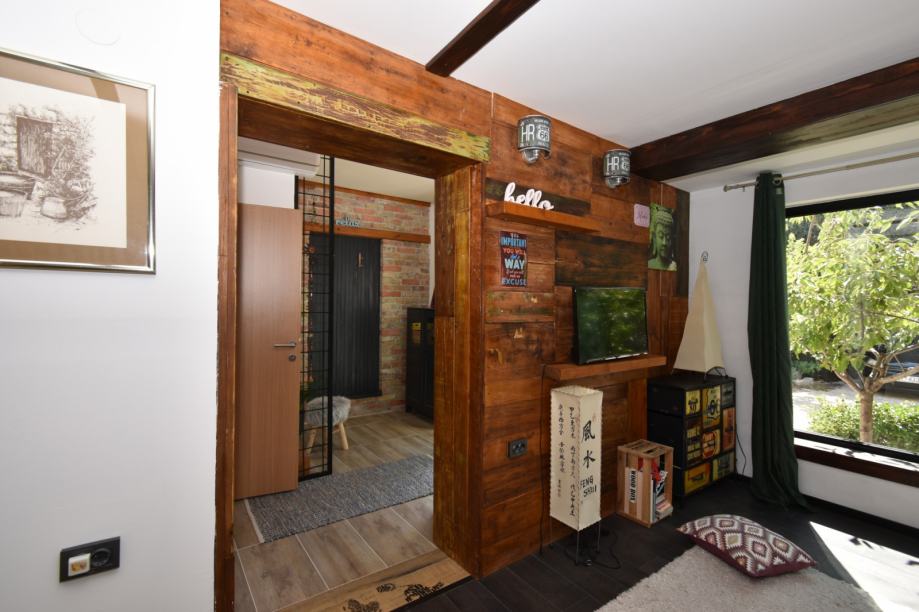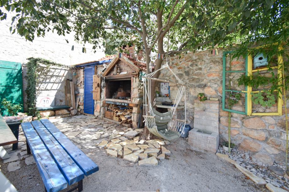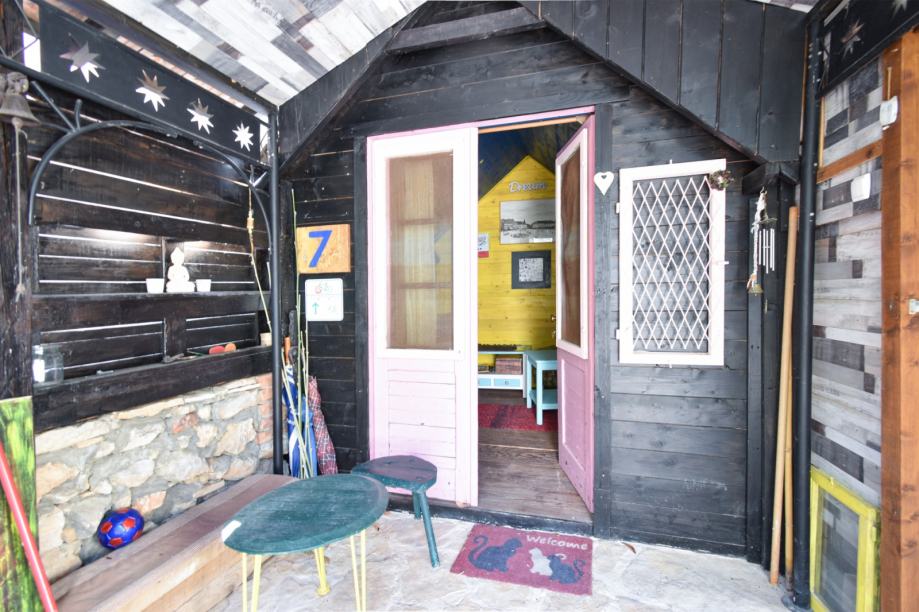 U dvorištu roštilj, slatka drvena kućica za djecu s malim toaletom, te dovoljno prostora za nekoliko parkirnih mjesta.