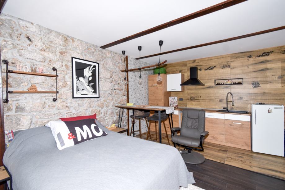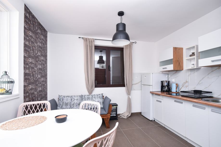Tri stambene jedinice od čega su dvije u prizemlju i jedna na prvom katu. Stan u prizemlju se sastoji od jedne spavaće sobe, dnevnog boravka, kuhinje, kupaonice i terase. Druga stambena jedinica ima divno predsoblje, kupaonice te kuhinju i spavaći dio.