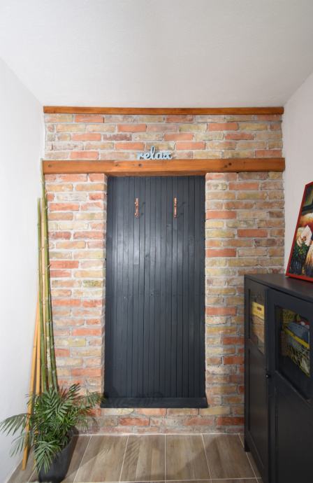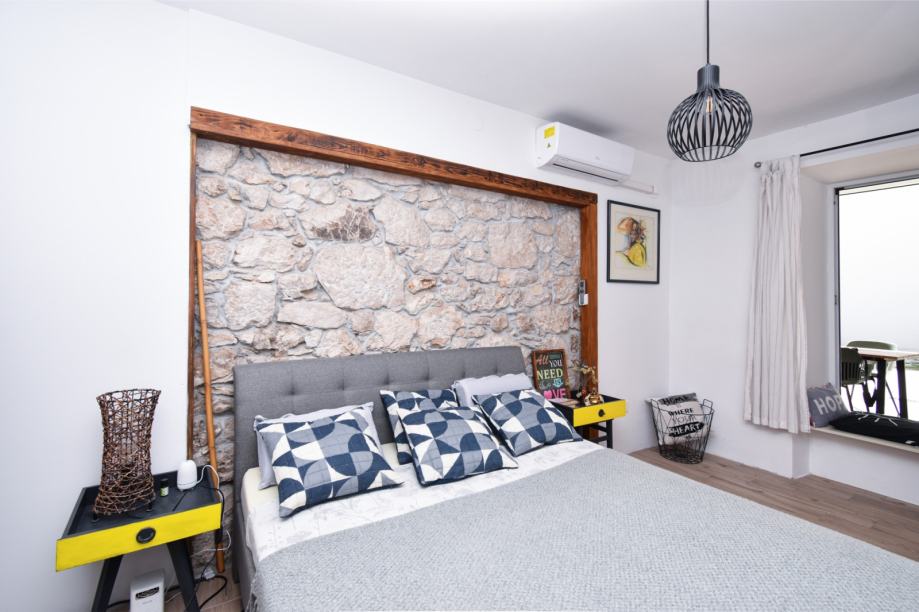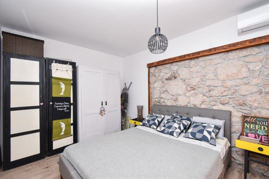Na katu stan s dvije spavaće sobe, kuhinjom i blagovaonicom, hodnikom, kupaonicom i prostranom terasom.
