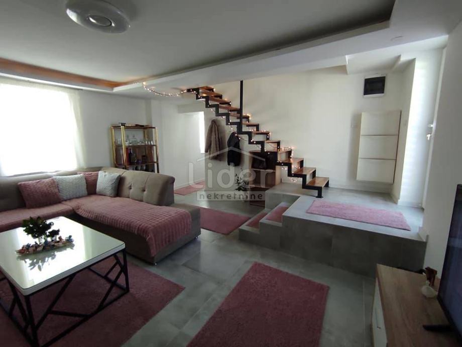 Kuća ima 131 m2 ( 40+40+51) i pogled na more. Također zajedničko dvorište od 350 m2.