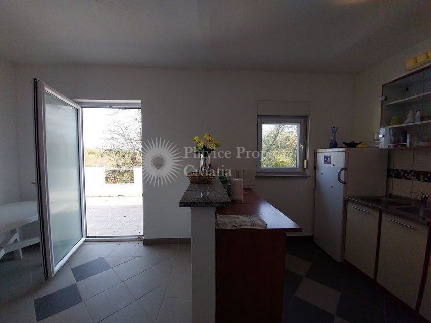 Renoviran 2023. godine, ovaj se dom može pohvaliti svježim, ažuriranim izgledom s novooslikanim zidovima. Nakon ulaska, prijatan hodnik vodi vas u dnevnu sobu, gdje udobna peć na drva dodaje toplinu i karakter. Glavni kat također sadrži udobnu spavaću sobu, nedavno popločanu kupaonicu klasičnog dizajna i funkcionalnu kuhinju koja je povezana izravno s terasom—idealnu za uživanje u obrocima s pogledom na vrt.
