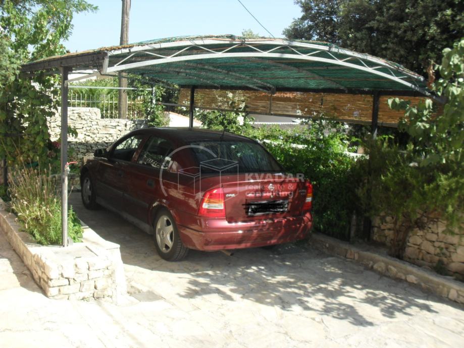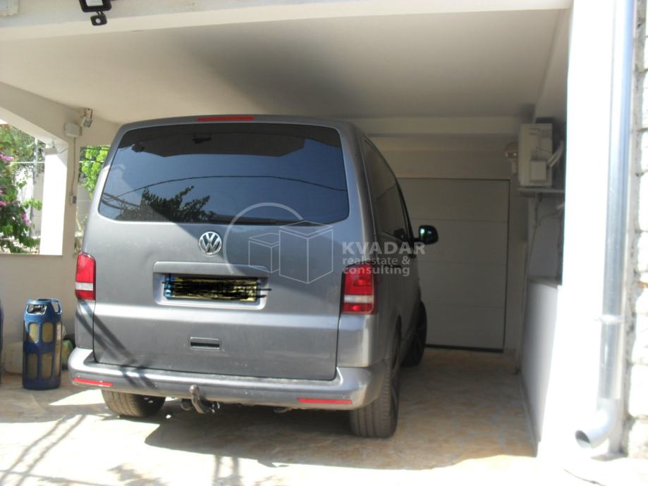 U prizemlju se nalazi garaža, a na ulaznom dijelu sa lijeve i desne strane se mogu parkirati još 4 vozila.