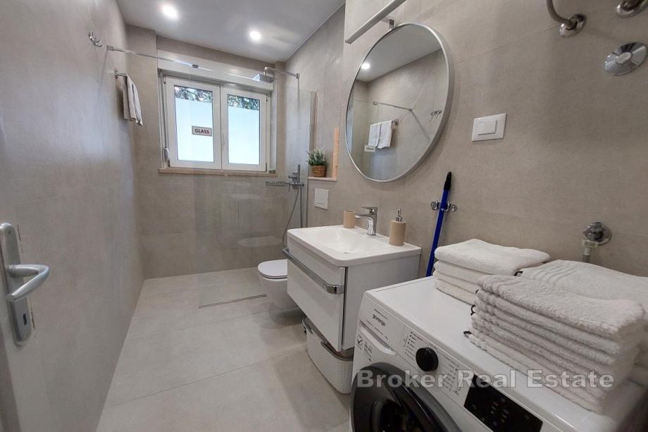 Na prodaju je kompletno namješten a opremljen je podnim grijanjem u svim prostorijama osim spavaćih soba. Tokom renovacije sve instalacije su promjenjene.