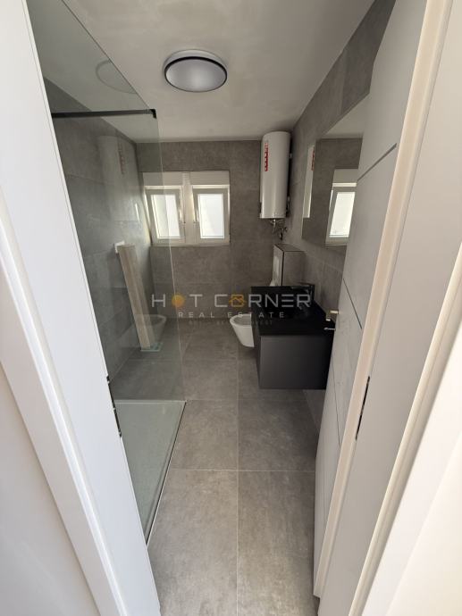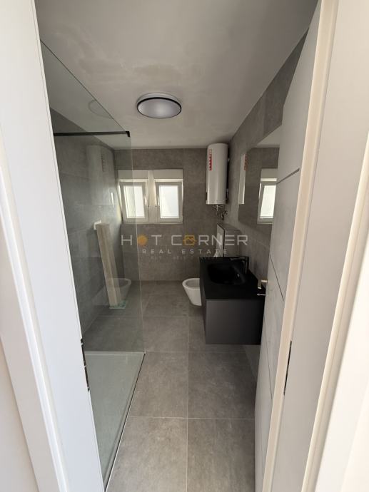 Centar Pule, na 150 m od Arene, na prodaju renovirani stan u jednoj najkvalitetnijih pulskih starogradnji. Stan ima ukupnu površinu 30 m2, a sastoji se od dnevnog boravka s kuhinjom, jedne spavaće sobe i kupaone te ima na korištenje veliku krovnu terasu površine cirka 30 m2, na kojoj će sadašnji vlasnik postaviti i pergolu. Stan je nedavno kompletno renoviran (novi krov, nove elektro- i vodoinstalacije, termo i hidroizolacija, oluci, fasada, zidovi, pločice, sanitarije, PVC stolarija, komarnici, protuprovalna ulazna vrata). Stan je orijentiran zapadno, južno i sjeverno. Sa zapadno orijentirane terase se pruža prekrasan pogled na more, Arenu i pulsku luku. Stan se nalazi na 4. katu, zgrada nema lift. Parking iza zgrade na zajedničkom parkiralištu. Vlasništvo 1/1, UPORABNA, moguća i djelomična kupnja putem kredita.