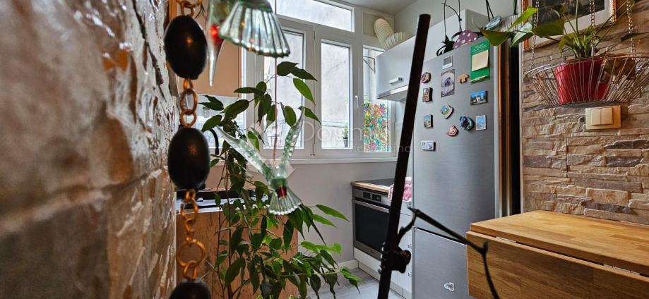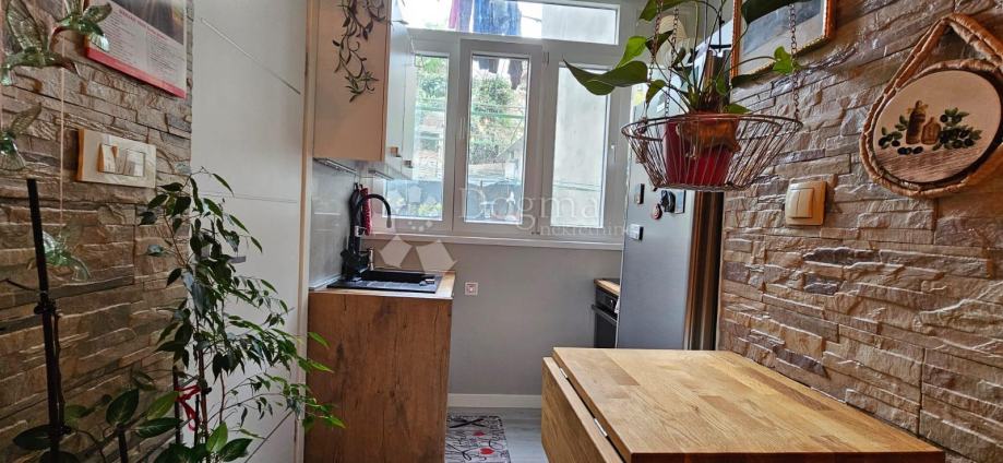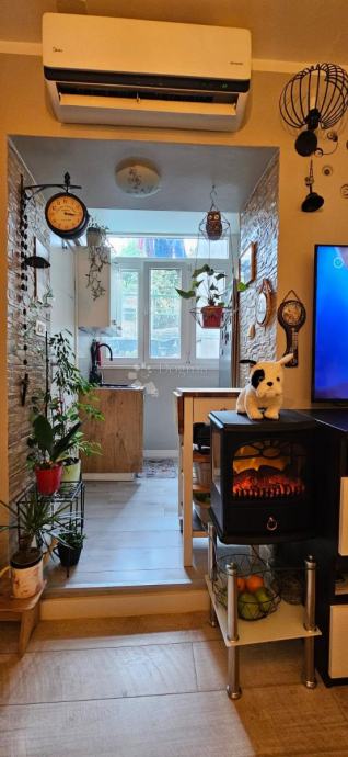 Stan je renoviran i sastoji se od spavaće sobe, kuhinjice, kupaone te malog dnevnog boravka sa blagovaonom.