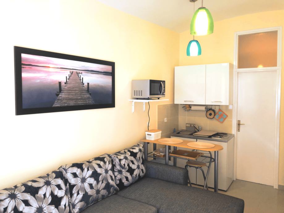 The studio apartment is located in the very center of Zagreb, and everything is easily accessible. It’s just a 5-minute walk to the shopping mall, various theaters, sports and recreational facilities, and a 10-minute walk to the main city square and the famous fresh groceries market Dolac.