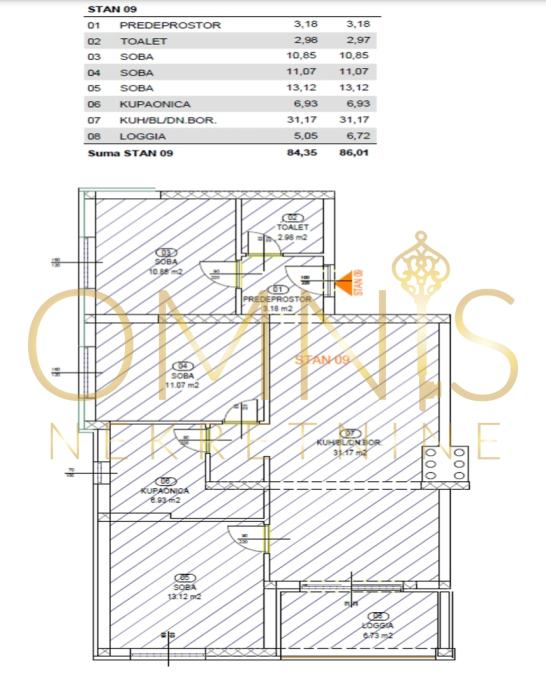 Prodaje se stan ukupne površine 86,01 m2 na 3. katu.
