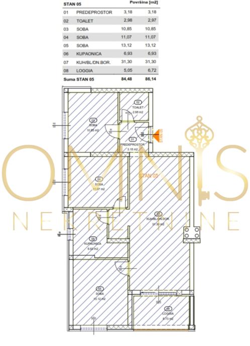 Prodaje se stan ukupne površine 86,14 m2 na 2. katu.