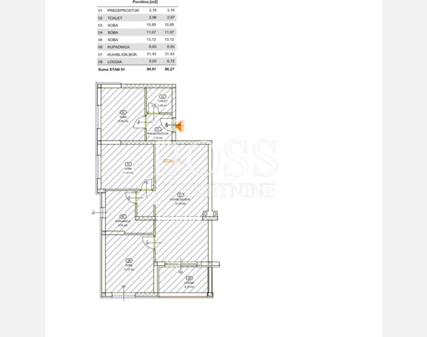 Rešetari, u ponudi imamo novogradnju od provjerenog investitora. 3S+DB, 86.27m2. Većim stanovima pripada garaža za dva automobila, manjim stanovima pripada jedno garažno i jedno vanjsko parkirno mjesto, a najmanjim stanovima pripadaju dva vanjska parkirna mjesta. Svakom stanu pripada ostava. Etažno podno grijanje na struju, klima uređaj i dimnjak. Odlična vanjska izolacija, stiropor 10cm, troslojna PVC stolarija, betonska međukatna konstrukcija sa zvučnom i termo izolacijom. Moguće je izabrati podne obloge do cijene od 20€ s PDV-om, te sanitarije do 1000€ s PDV-om. Kupac ne plaća porez na promet nekretnina. Boss, kontakt: 091/379-1010 Dragan