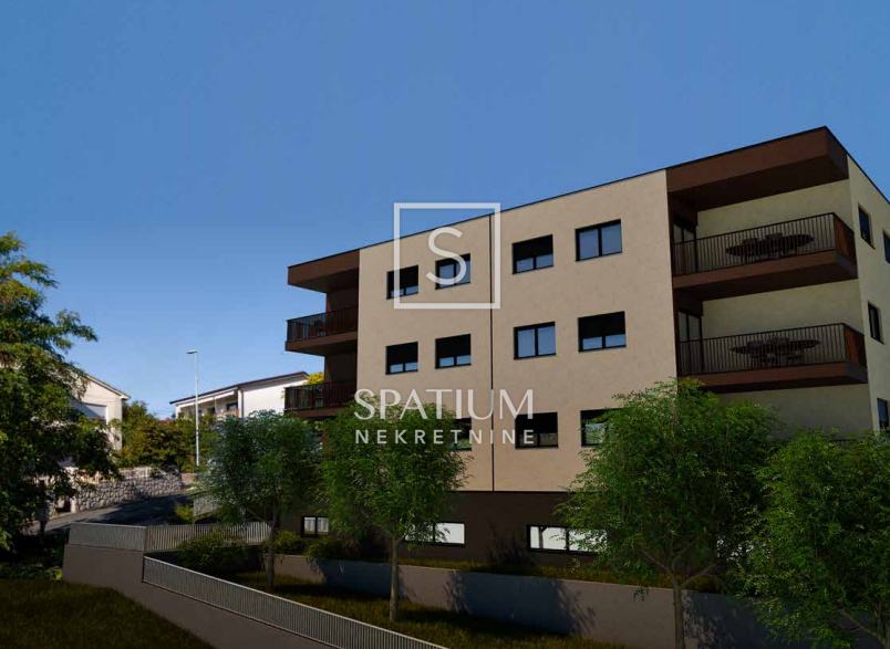 REŠETARI, KASTAV, u ponudi je stan u novogradnji površine 96,61 m2. Sastoji se od ulaznog prostora, dnevnog boravka s kuhinjom i blagovaonom iz kojih se izlazi na lođu, ostave, kupaone te dvije spavaće sobe od kojih jedna ima prostor za garderobu.