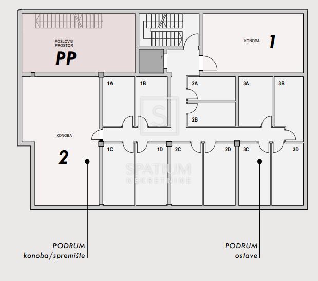 Stanu pripadaju dva parkirna mjesta, jedno u garaži a drugo vanjsko te ostava površine 12 m2 u podrumu.