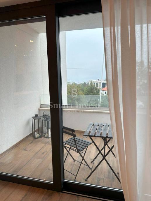 Stan površine 90,89 m2, nalazi se na 1.katu novogradnje te se sastoji od: ulaznog hodnika, tri spavaće sobe, open space dnevnog boravka sa kuhinjom i blagovaonicom, dvije kupaonice od kojih je jedna s tuš kabinom dok druga posjeduje kadu, utility rooma, i balkona s kojeg se pruža pogled na okolinu i more.