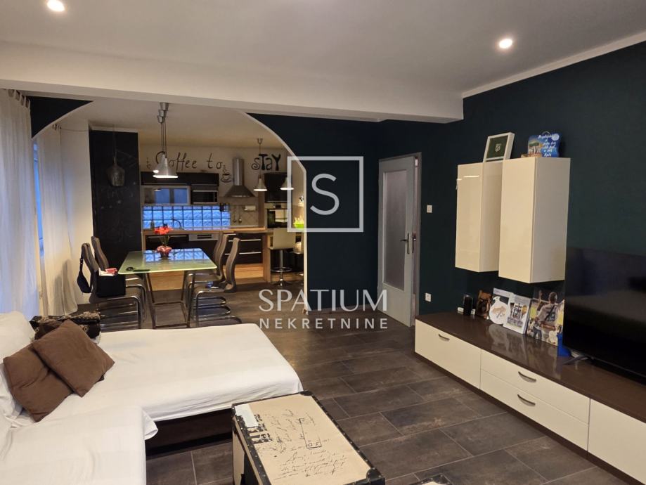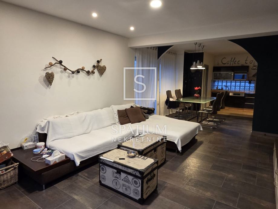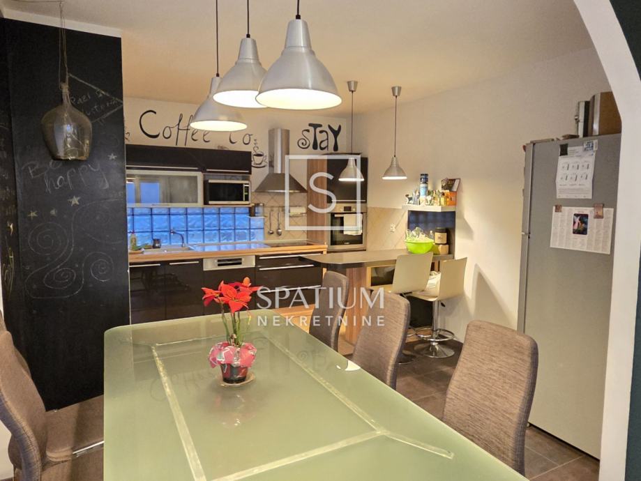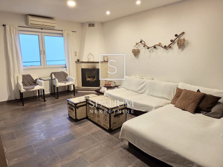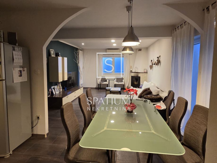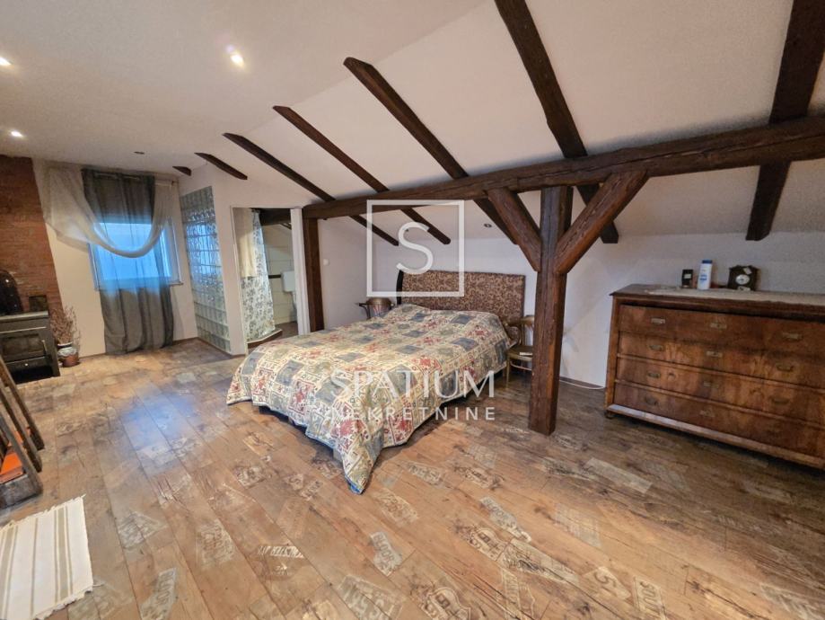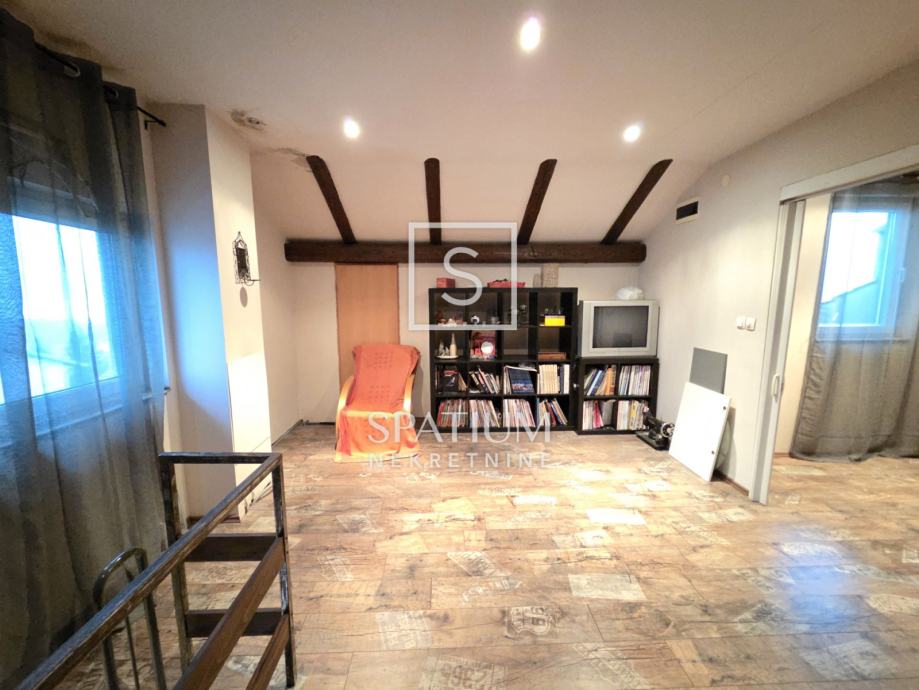 Na katu se nalazi potpuno uređen dvoetažni stan površine 110 m², koji se sastoji od: