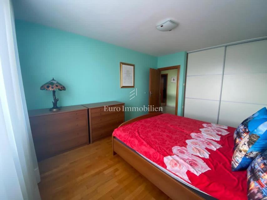 Tlocrtno, stan zauzima 133 m2, a uz pripadajuće prostore, ukupna površina stana iznosi 206 m2. Stan se sastoji od tri spavaće sobe, kupaonice, toaleta, kuhinje s ostavom, blagovaonice s dnevnim boravkom, te ugradbenih ormara kroz hodnik i u sobama. Dodatno, stan ima tavanski prostor od 70 m2 koji pripada stanu i može se urediti kao dvoetažni. Grijanje je podno kroz cijeli stan, a tu su i klima uređaj te peć na drva. Stanu također pripada ostava u suterenu površine 8 m2.Također, stanu pripada terasa i parkirno mjesto.