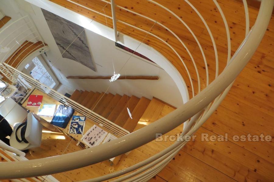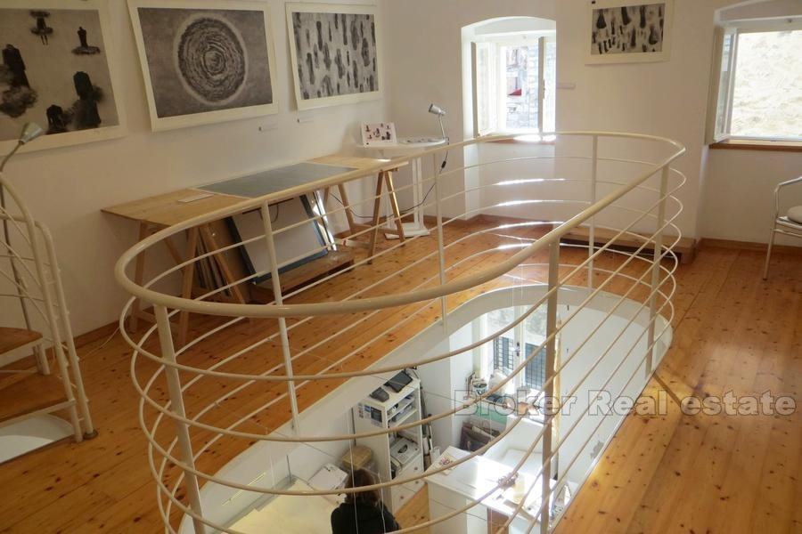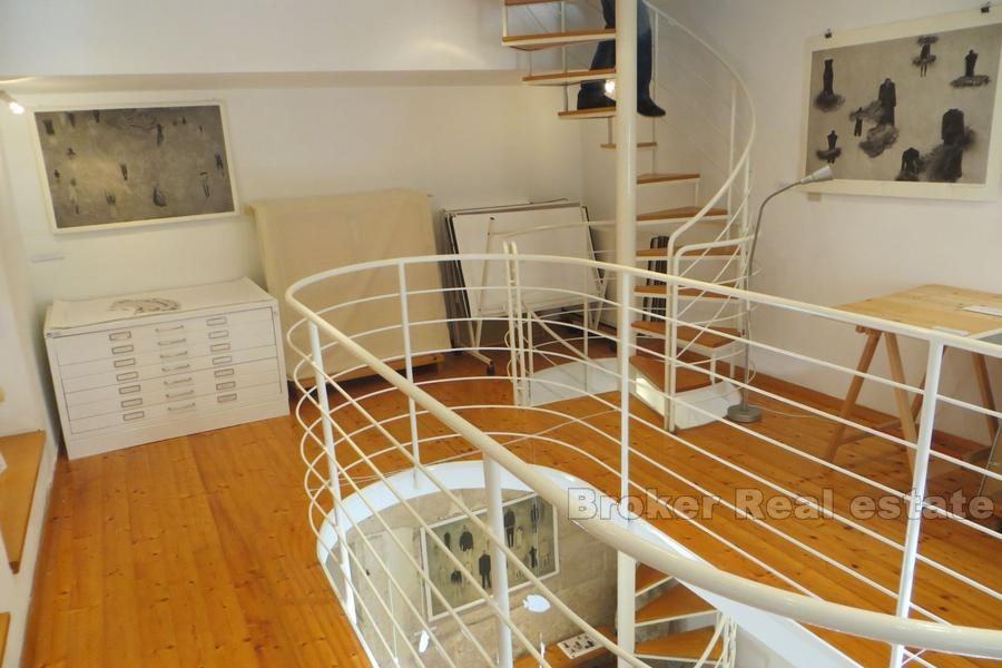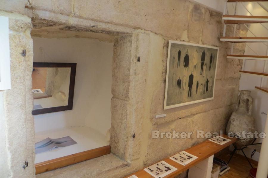 Atraktivan stambeno-poslovni prostor u srcu Dioklecijanove palače smješten u kamenoj kući. Kompletno renoviran , trenutno pretvoren u galerijski prostor.