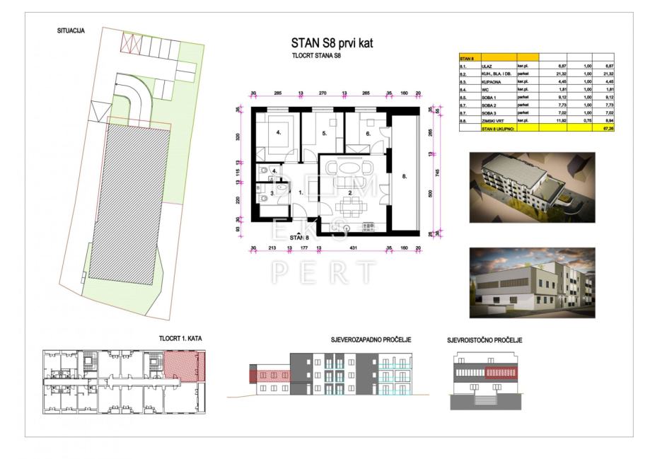 - 67,26m² – ukupna prodajna površina s pripatkom lođom (zimskim vrtom), obračunatom prema pripadajućem koeficijentu.