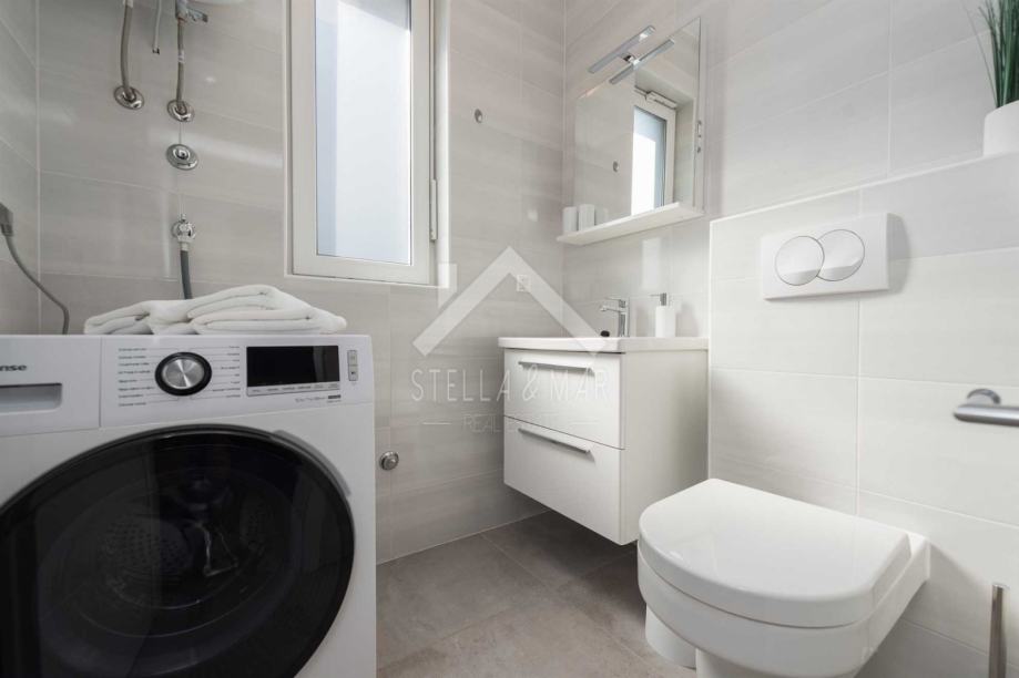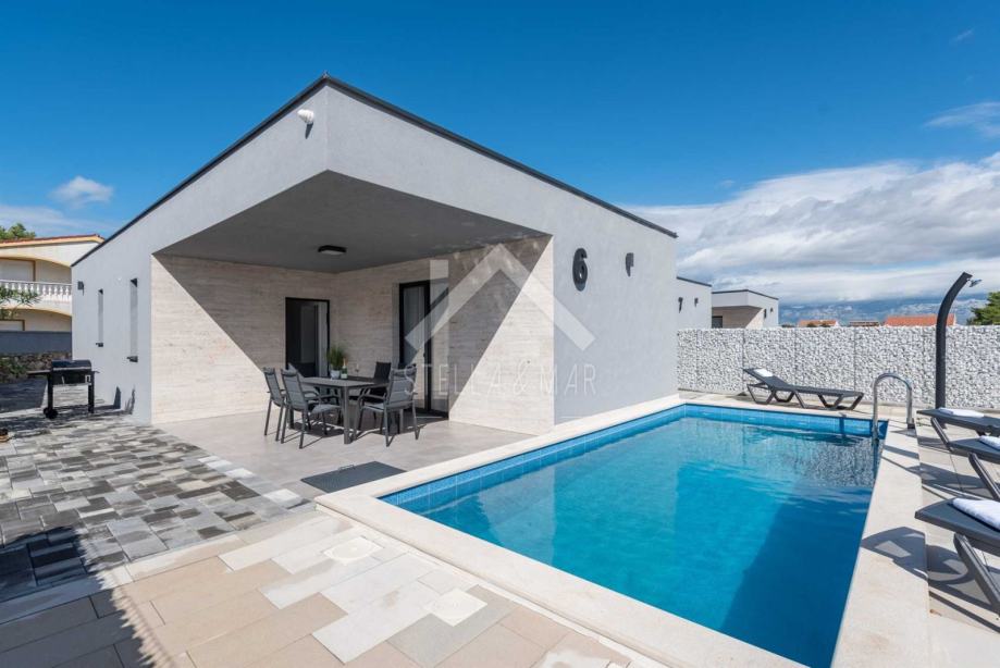 Privatni prostor oko kuće je oko 180m2 i uključuje vlastiti bazen veličine 24m2 i 1,7m dubine, terasu za sunčanje s tušem i ležaljkama, te mjesto za roštilj.