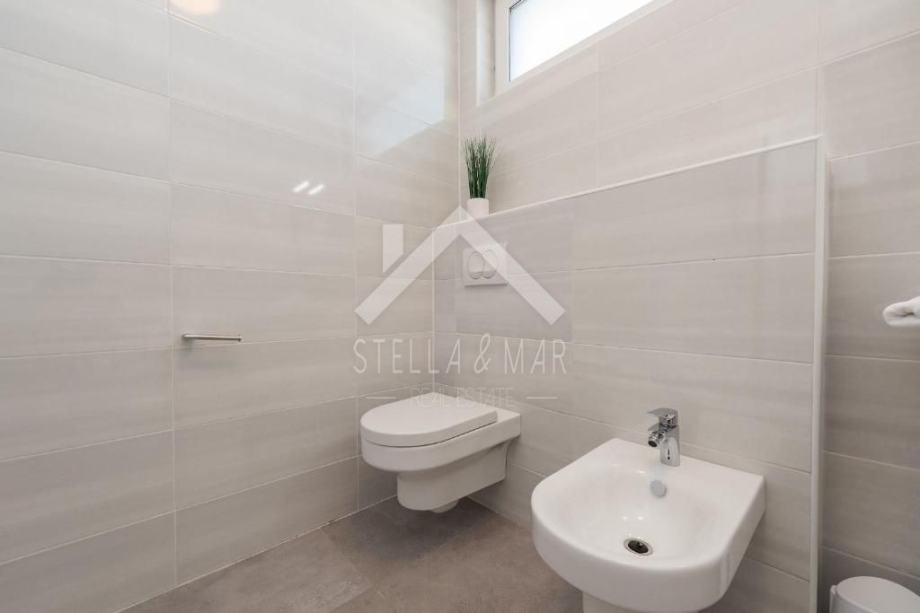 Iz dnevnog boravka se izlazi na terasu veličine 18m2 na kojoj se gostima nalazi set vrtnog namještaja.