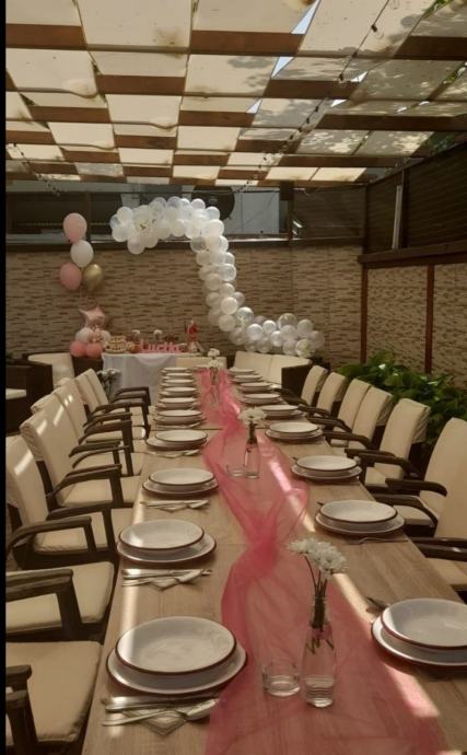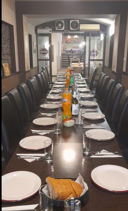 Restoran ima 2 ulaza, jedan sa korza, drugi sa bočne ulice gdje je i terasa.