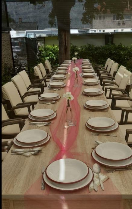 Hotel i restoran ima svu opremu za rad. Ukupna površina restorana , kuhinje i skladišta 200 m2, te privatna terasa 200 m2, na korištenje.