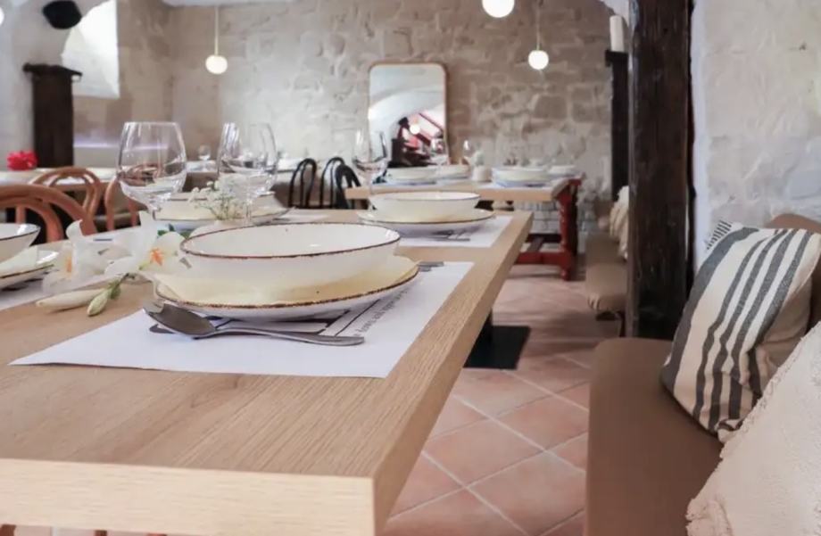 Sastoji se od uslužnog dijela restorana gdje se uz mjesta za goste s kapacitetom za minimum 44 osobe (11 stolova) nalaze bar i veliki zidani kamin, muškog i ženskog toaleta, prostora za hladnjake, zamrzivače i ormariće za osoblje, toaleta za osoblje i potpuno opremljene kuhinje koja je odvojena od uslužnog dijela i ima izlaz na dvorište zgrade.