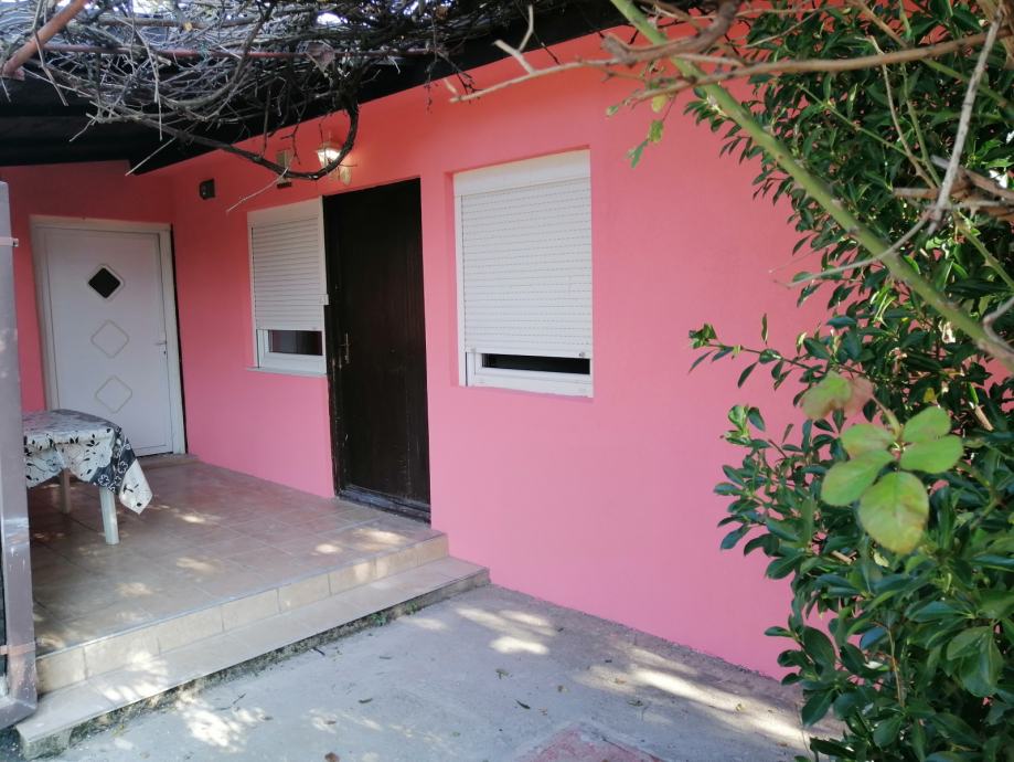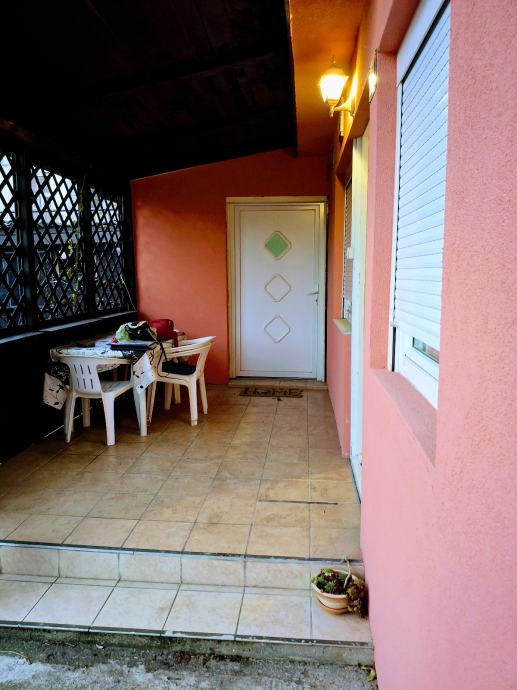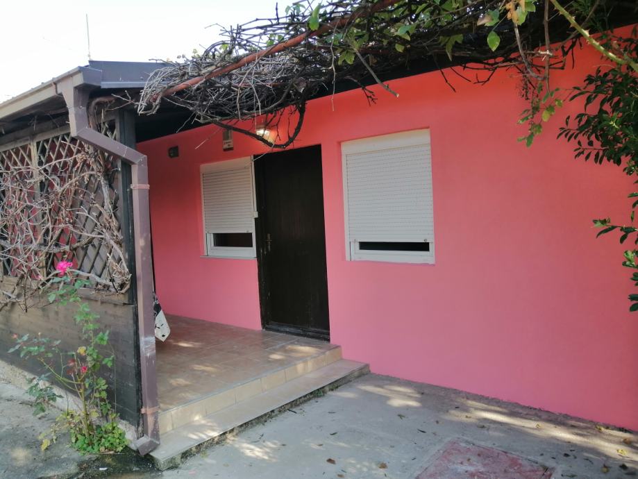 U prvom redu kuća, iza zgrada na Aveniji Dubrava, prodaje se potpuno renovirana švedska montažna kuća sa dodatnim natkrivenim trijemom i zidanom kuhinjom sa blagovaonom: