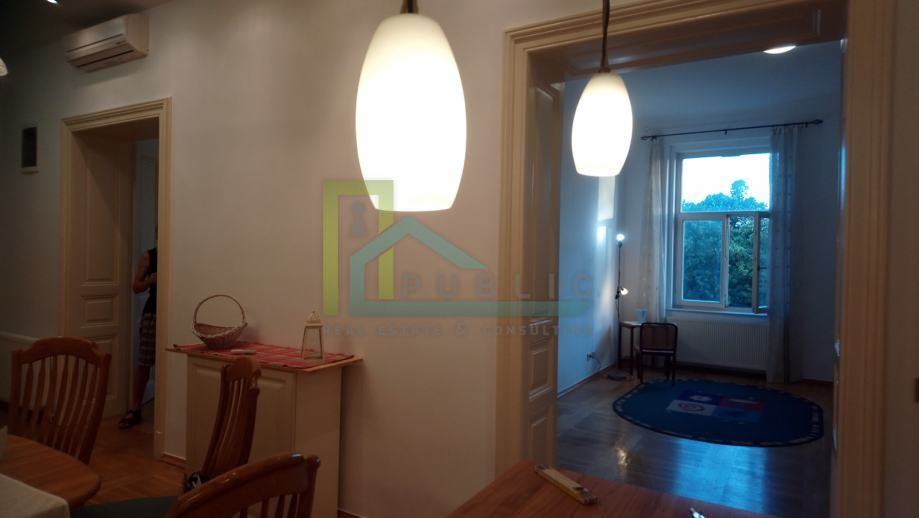 For rent is a beautiful newly renovated three-bedroom apartment of 100 m2 on the third floor of a residential building in the very center of Zagreb - Ribnjak.