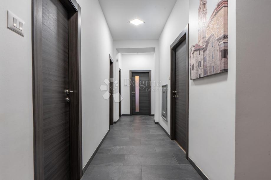 Stan se sastoji od četiri prostrane spavaće sobe, prostranog dnevnog boravka iz kojeg se izlazi na ukusno uređenu balkon, savršenu za uživanje u jutarnjoj kavi ili večernjem opuštanju. Kuhinja s blagovaonicom je funkcionalna i elegantna, pružajući dovoljno prostora za obiteljska okupljanja, dok je kupaonica moderna i praktična ,wc i vešeraj. Hodnik povezuje sve prostorije i dodatno doprinosi funkcionalnosti stana.