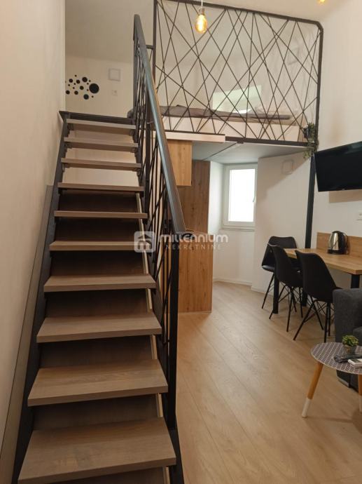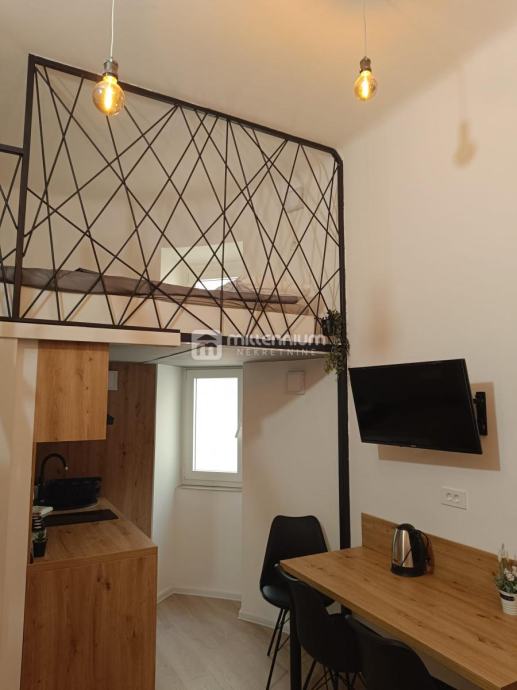 Na prodaji je garsonjera 20m2 sa galerijom i balkonom na drugom katu uredne zgrade. Garsonjera je renovirana prošle godine. Kompletno nova instalacija struje i vode, podovi, te kompletno namještena po mjeri tako da je svaki kutak stana sto posto iskorišten. Stan se sastoji od kuhinje, dnevnog boravka, kupaone,balkona i galerije koja je spavaći dio površine 8 m2. Stan se prodaje potpuno namješten sa svim kućanskim aparatima. Nalazi se na odličnoj lokaciji pored Omladinskog igrališta na Belvederu, na 10 minuta hoda od centra grada. Stanu pripada i spremište u prizemlju zgrade.