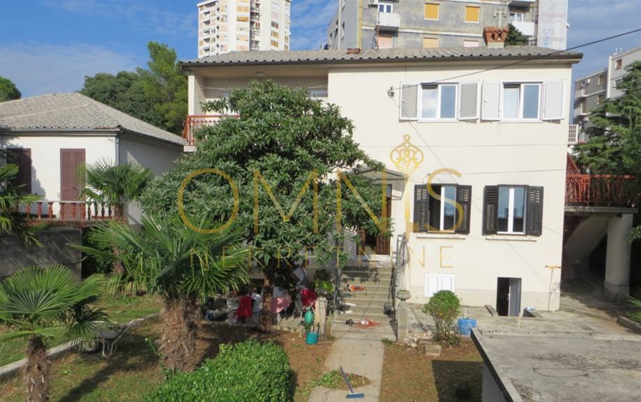 Na prodaju je etažirana kuća s dvije potpuno odvojene stambene jedinice, dvije garaže, vrtom i velikom ograđenom okućnicom površine 673 m2. Nalazi se na izvrsnoj lokaciji u Rijeci, svega 7 minuta pješice od strogog centra grada.