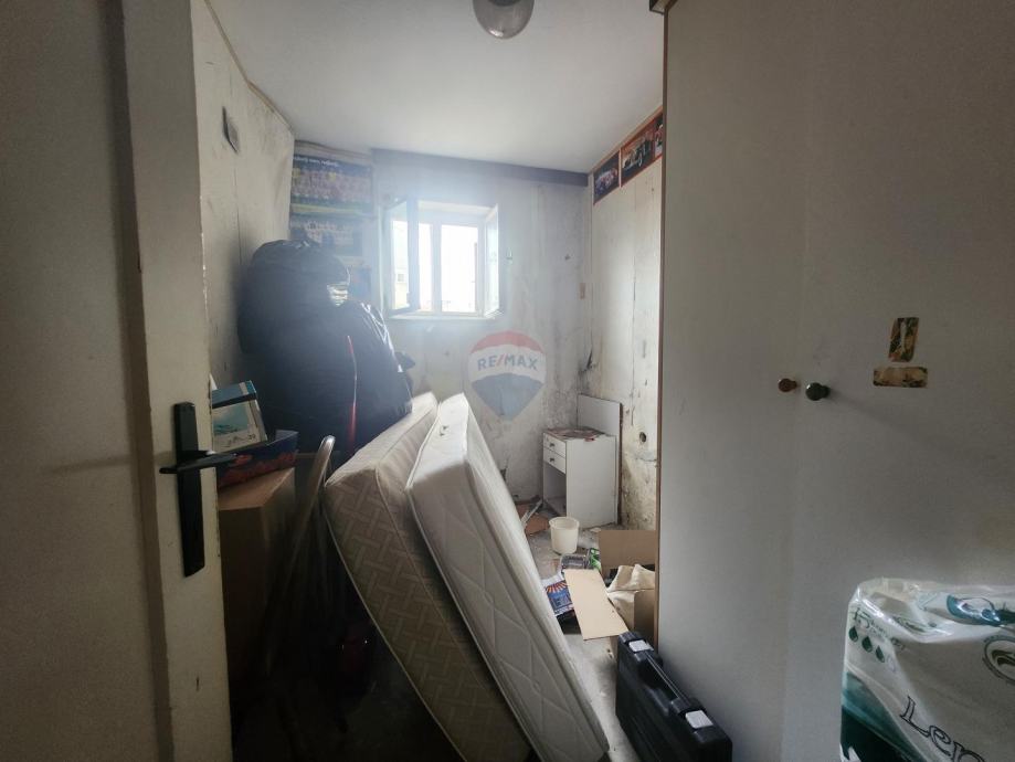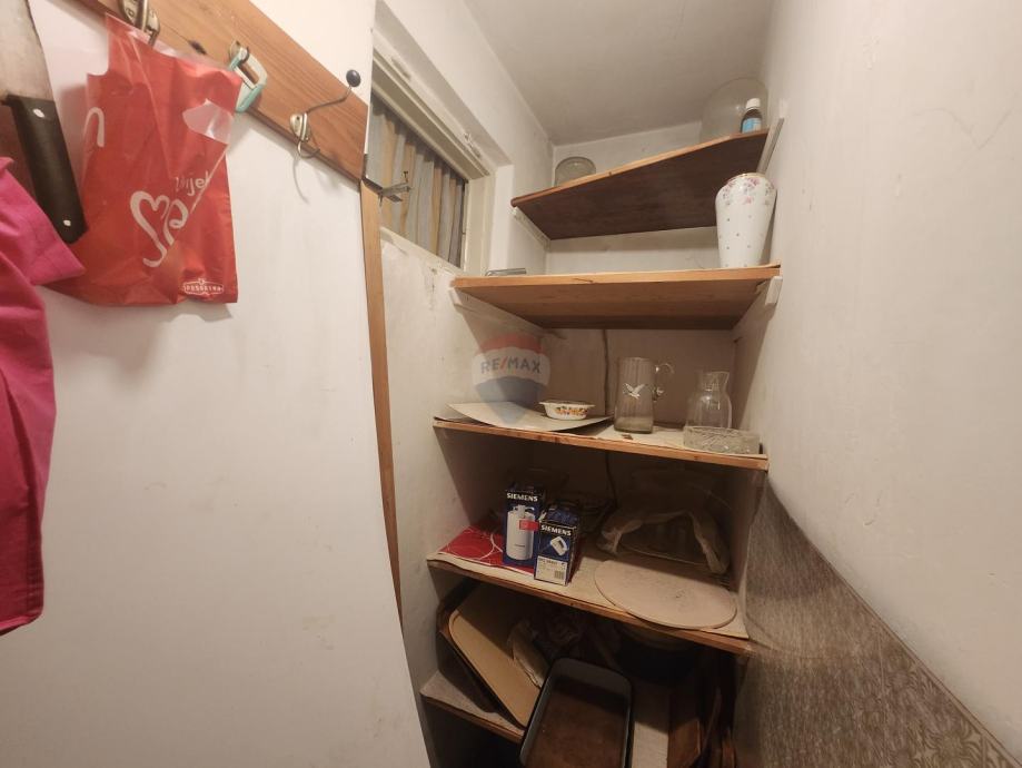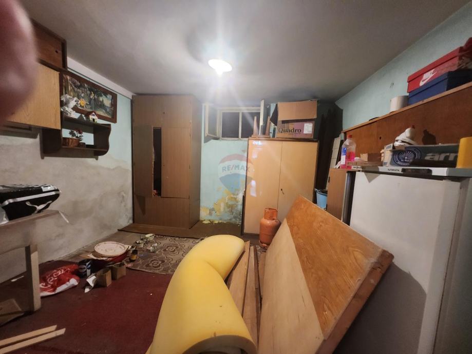 Etaža / stan sastoji se od prvog hodnika iz kojeg se ulazi u veliko spremište od 12 m2 zapadne orijentacije iskoristivo za stanovanje te dodatnog manjeg spremišta