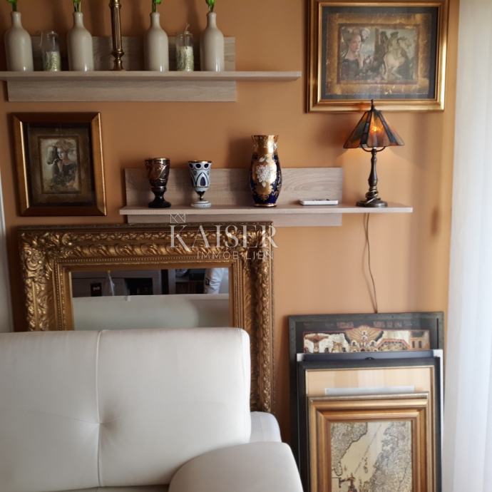 Kaiser Immobilien predstavlja trosoban lijepo uređen stan od 82 m2 na pješke 15 minuta od centra grada. Nalazi se na 12. katu stambene zgrade. Na 13. katu ima vlastito spremište. Grijanje je preko gradske toplane, ukoliko se želi ugasiti postoji i mogućnost grijanja na plin. Također ima klima uređaj. Stolarija je nova i prodaje se namješten. Stan se sastoji od 3 spavaće sobe (jedna soba je trenutno namještena kao radna soba, a druga kao walk-in ormar), dnevnog boravka, kuhinje, kupaonice i wc-a.
