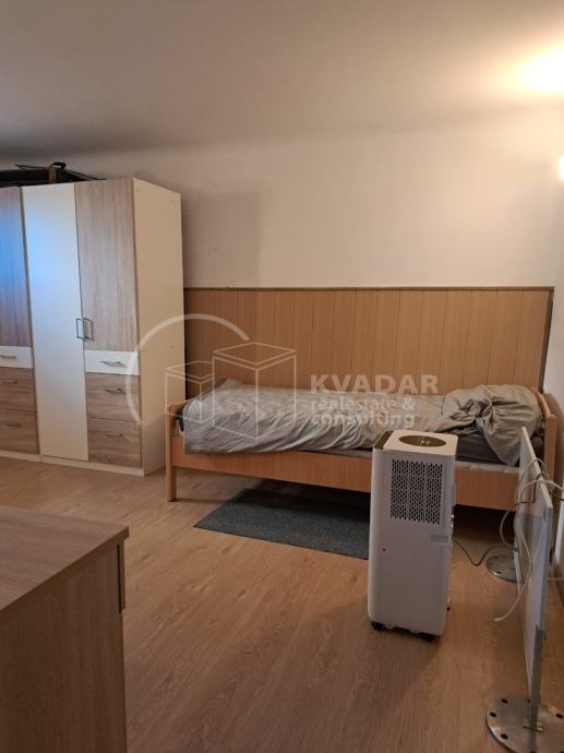 Stan je djelomično renoviran, uredan i odmah useljiv. Iznajmljuje se opremljen svim potrebnim kućanskim uređajima, jednom zidnom klimom u kuhinji, te jednom prijenosnom. Svaka soba ima radni stol, krevet i garderobni ormar. Grijanje i hlađenje je riješeno klima uređajima.