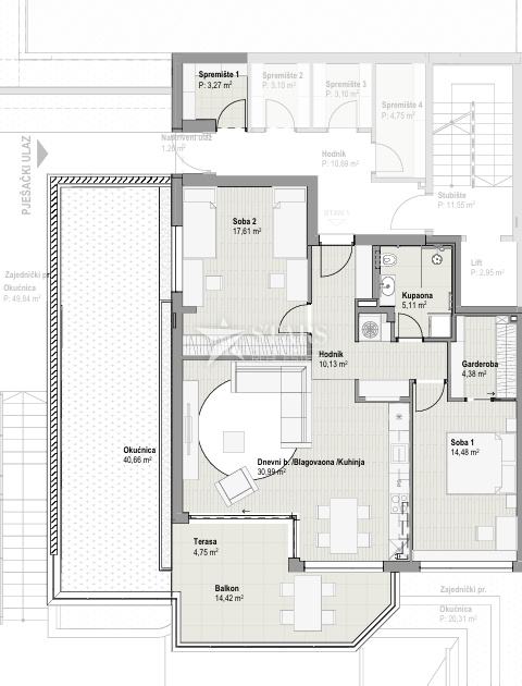 -Dnevni boravci usmjereni prema jugu ili zapadu s izlazom na balkone ili terase.