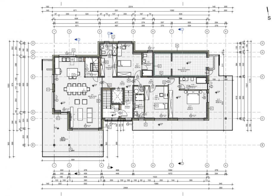 Netto površina ovog prostranog stana je 321 m2, od čega je stambeni dio 190 m2.