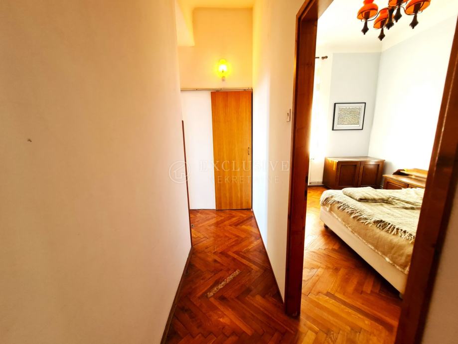 Sastoji se od ulaznoga hodnika, prostranoga dnevnoga boravka, kuhinje sa špajzom i blagovaonom, wc-a, kupaone te tri spavaće sobe. U vlasništvu je i spremište koje se nalazi u prizemlju zgrade, te dio potkrovlja od cca 8m2. Zgrada je kvalitetna, stubište održavano, za sada je promijenjen, odnosno obnovljen, krov, a u planu je i obnova fasade te ugradnja lifta kako bi se olakšao pristup višim katovima.