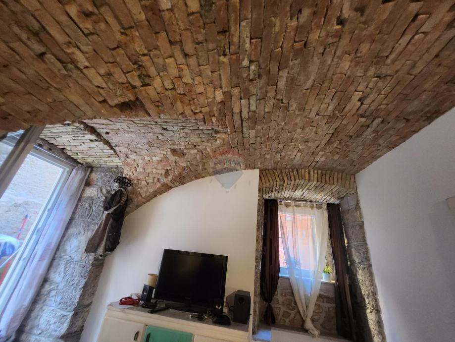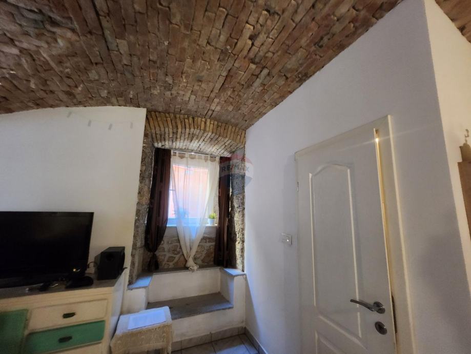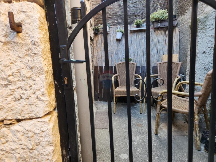 Stan u visokom prizemlju sastoji se od hodnika, open space (kuhinja, blagovaona i dnevna) spavaće sobe i kupaone, ukupne površine prema Vlasničkom listu od 52,27m2. Stan ima direktan izlaz na zatvorenu okućnicu sa terasom preko koje se osim sa ulice stiže u stan u suterenu (preuređenu konobu). Stan u suterenu ima malu terasu na ulazu a sastoji se od open space (kuhinja, blagovaona i dnevna) 2 spavaće sobe i kupaone. Stan u suterenu nije u Vlasničkom listu. Zgrada ima novi krov te se očekuje obnova fasade.
