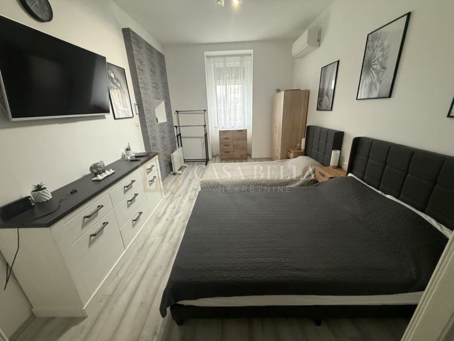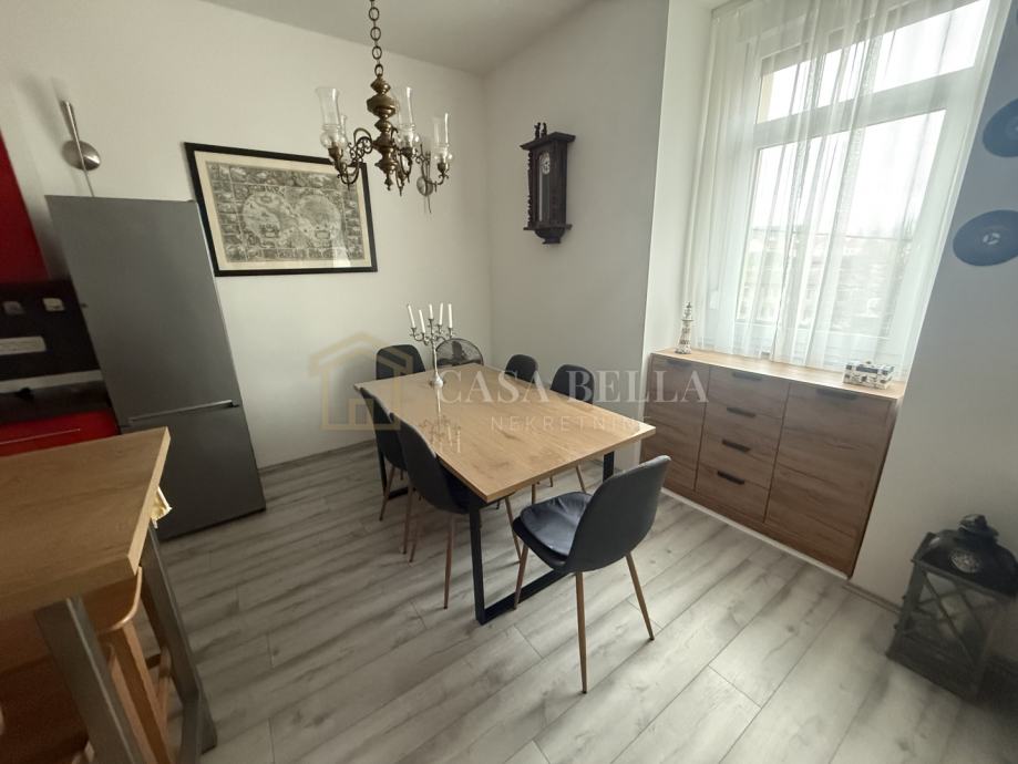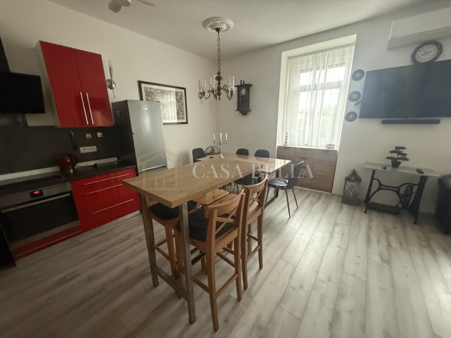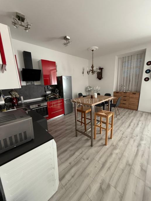 CASA BELLA iz ponude izdvaja ekskluzivno u našoj ponudi potpuno renoviran i iznimno funkcionalan stan na odličnoj lokaciji u Rijeci, ukupne površine 87 m², idealan za obiteljski život ili kao sigurna investicija. Stan je kompletno i kvalitetno renoviran – sve instalacije vode i struje su nove, uključujući kablove, osigurače i strujomjer, ugrađena je nova PVC stolarija s roletama i komarnicima, postavljeni su novi podovi, zidovi su pregletovani, a spušteni stropovi dodatno doprinose energetskoj učinkovitosti. Stan ima nove klima uređaje, modernu kupaonicu s walk-in tuš kabinom, kameru ispred ulaznih vrata te balkon s novom rolo tendom. Sastoji se od dvije spavaće sobe, prostranog open space dnevnog boravka s kuhinjom i blagovaonicom, kupaonice i balkona, a pripada mu i podrum / drvarnica. Nekretnina nudi iznimnu fleksibilnost jer se može podijeliti na dvije ili tri zasebne stambene jedinice, što je čini odličnom prilikom za investitore. Dodatna prednost je mogućnost proširenja za dodatnih cca 28 m² otkupom prostorije u vlasništvu Grada Rijeke. Plin se nalazi pred vratima stana te postoji mogućnost uvođenja. Zgrada ima novi krov i novu fasadu, a lokacija je izuzetno atraktivna – u neposrednoj blizini Ekonomskog i Pomorskog fakulteta, kao i svih potrebnih sadržaja, uz mirno okruženje.