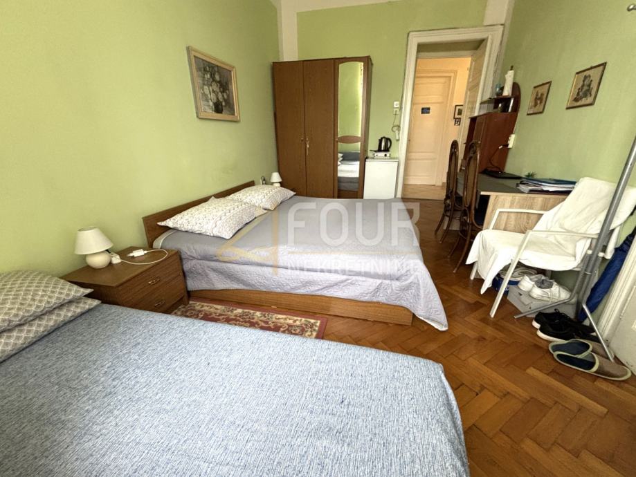 Prodaje se stan površine 89m2, u naravi preuređen u tri apartmana. Stan se sastoji od četiri spavaće sobe, tri kupaonice, kuhinje s blagovaonicom i spremišta. Stan je održavan, a električne i vodovodne instalacije u kuhinji i kupaonicama su nedavno obnovljene. Adaptacija je izvršena prije tri godine.