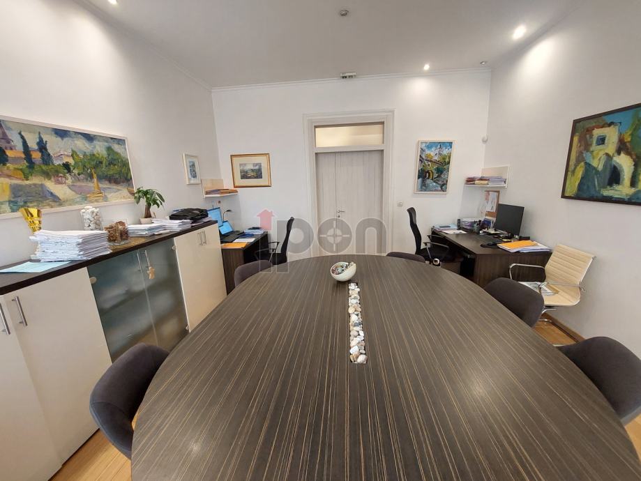 Nedaleko od centra grada iznajmljuje se stan koji u naravi funkcionira kao lijepo uređeni poslovni prostor, idealan za sve oblike uredskih djelatnosti. Radi o stanu sa tri velike, komforne uredske prostorije, pomoćnim spremišnim dijelom, čajnom kuhinjom i sanitrarnim čvorom. Svaka prostorija je klimatizirana, opremljena kvalitetnim uredskim namještajem, protuprovalnim vratima, a nedavno je obnovljen i sanitrani čvor. Lokacija zgrade u kojoj se nalazi stan je odlična jer je smješten u mirnijem dijelu središta grada, a do samog Korza dolazi se za 5 minuta hoda, tako da se izvan uredske aktivnosti mogu obavljati bez upotrebe automobila. Uz sve navedeno u blizinu su i bolnica, nekoliko fakulteta, autobusni i željeznički kolodvor, kao i brojni drugi sadržaji. Vlasnički se vodi kao stambeni prostor pa je pogodan i za kupnju za stanovanje ili kao investicija za razne oblike iznajmljivanja. Razgled moguć uz prethodnu najavuI